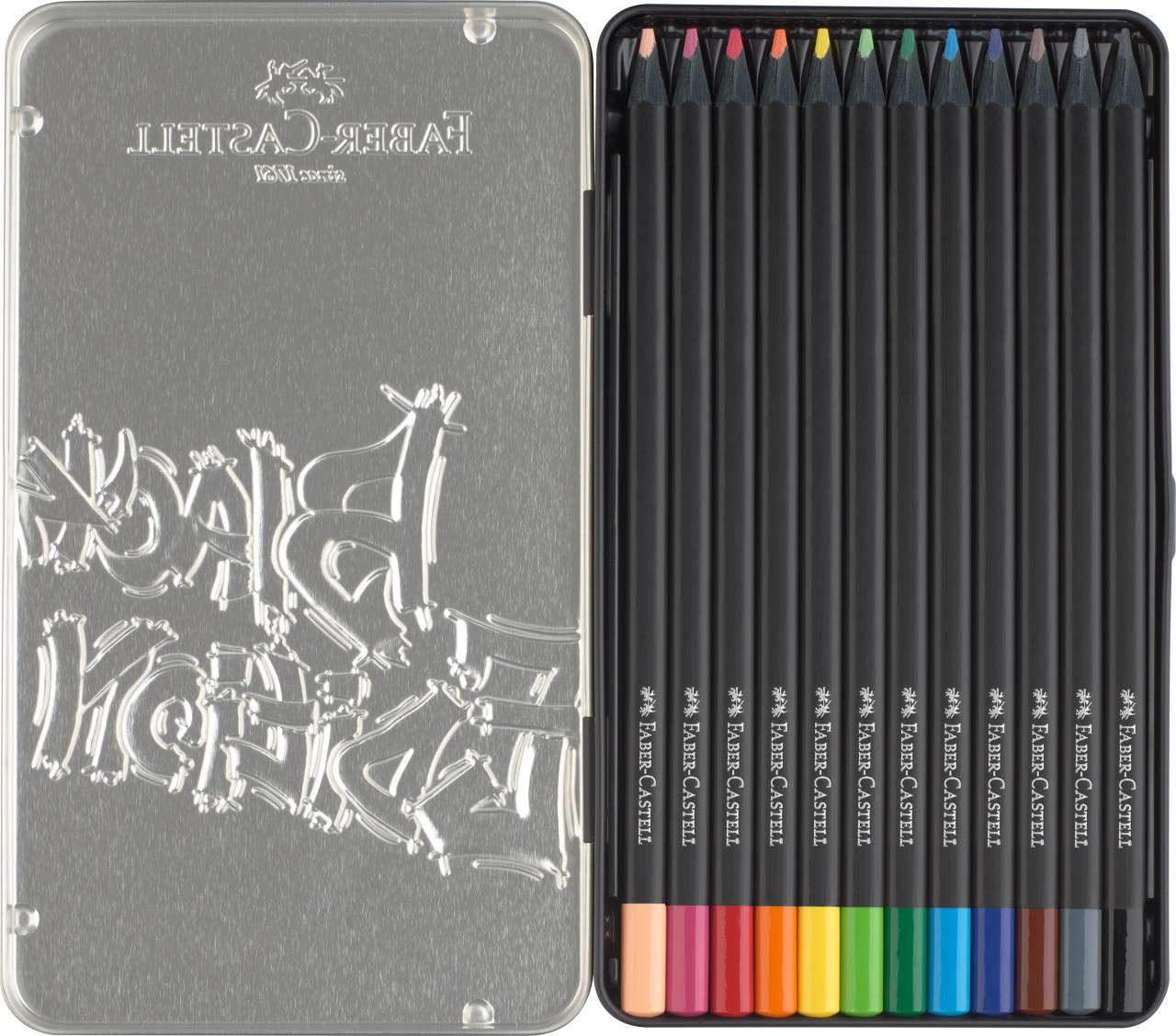 12 Buntstifte Faber-Castell Black Edition, Metalletui gravierbar 12 Faber-Castell Black Edition Buntstifte in einem praktischen und hochwertigen Metalletui, welches optional mit einer Namensgravur versehen werden kann, ideal als Geschenk z.B. zur Einschulung. Die dünnen Buntstifte haben eine ergonomische Dreikantform, ideal für Kinderhände und die super softe Mine sorgt für langen Malspaß und für tolle Farbeffekte, besonders auf dunklem oder farbigem Papier. Faber Castell Black Edition Buntst…
