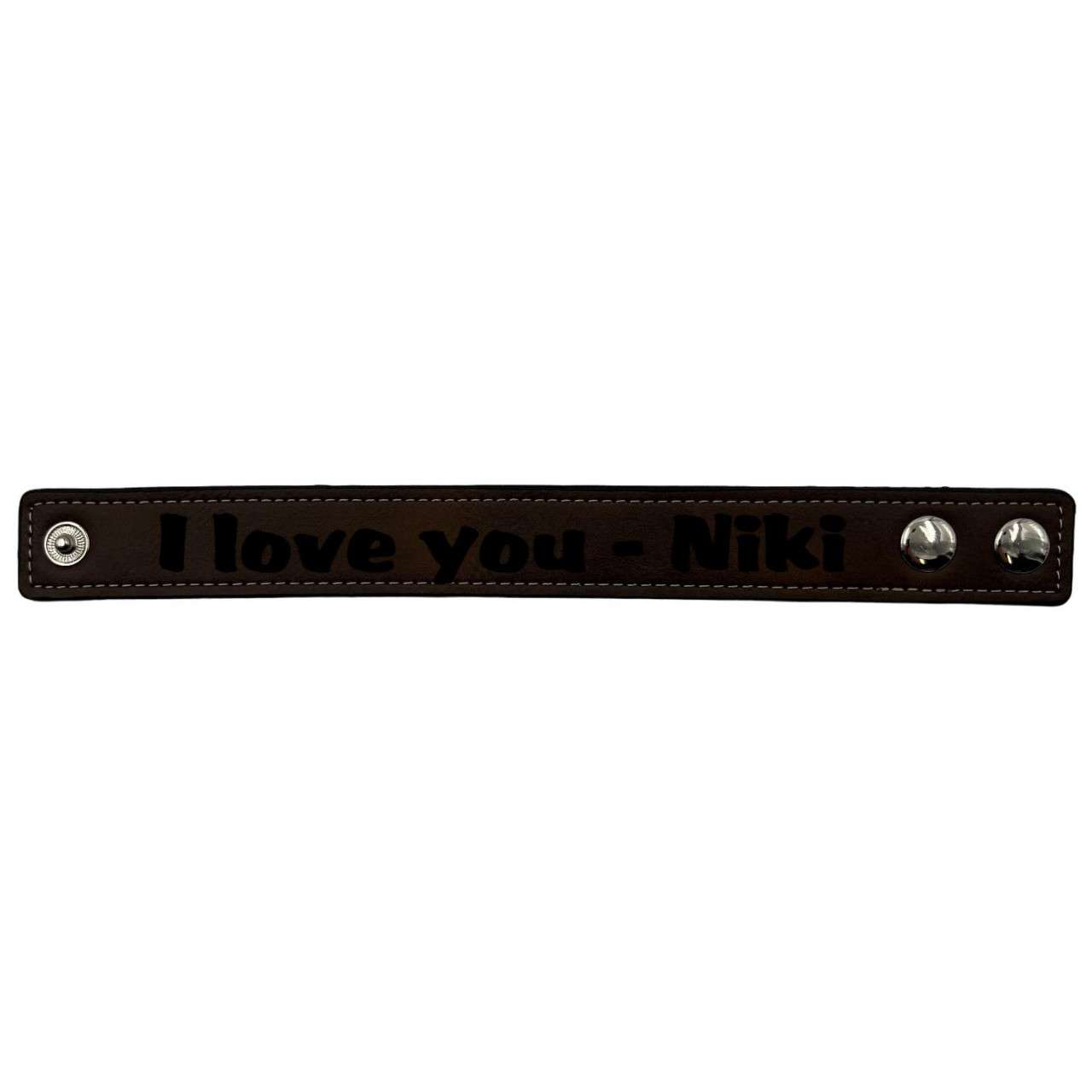 Armband Kunstleder schmal dunkelbraun personalisierbar in schwarz