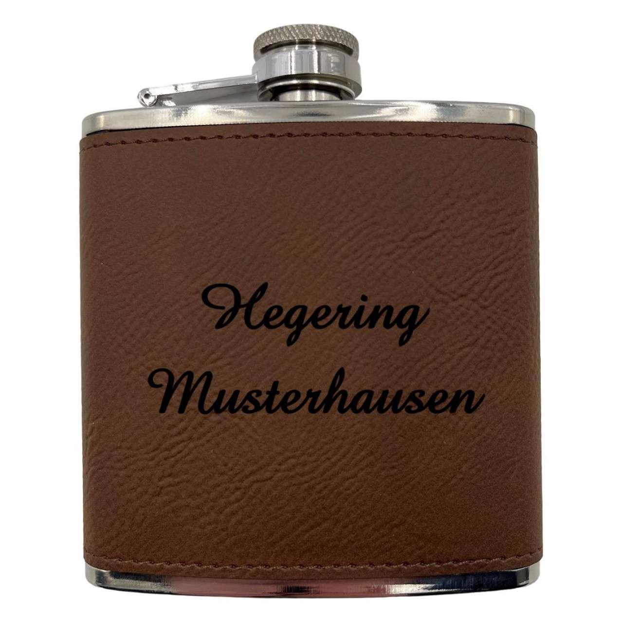Flachmann mit hochwertigem Kunstleder 180 ml braun personalisierbar in schwarz