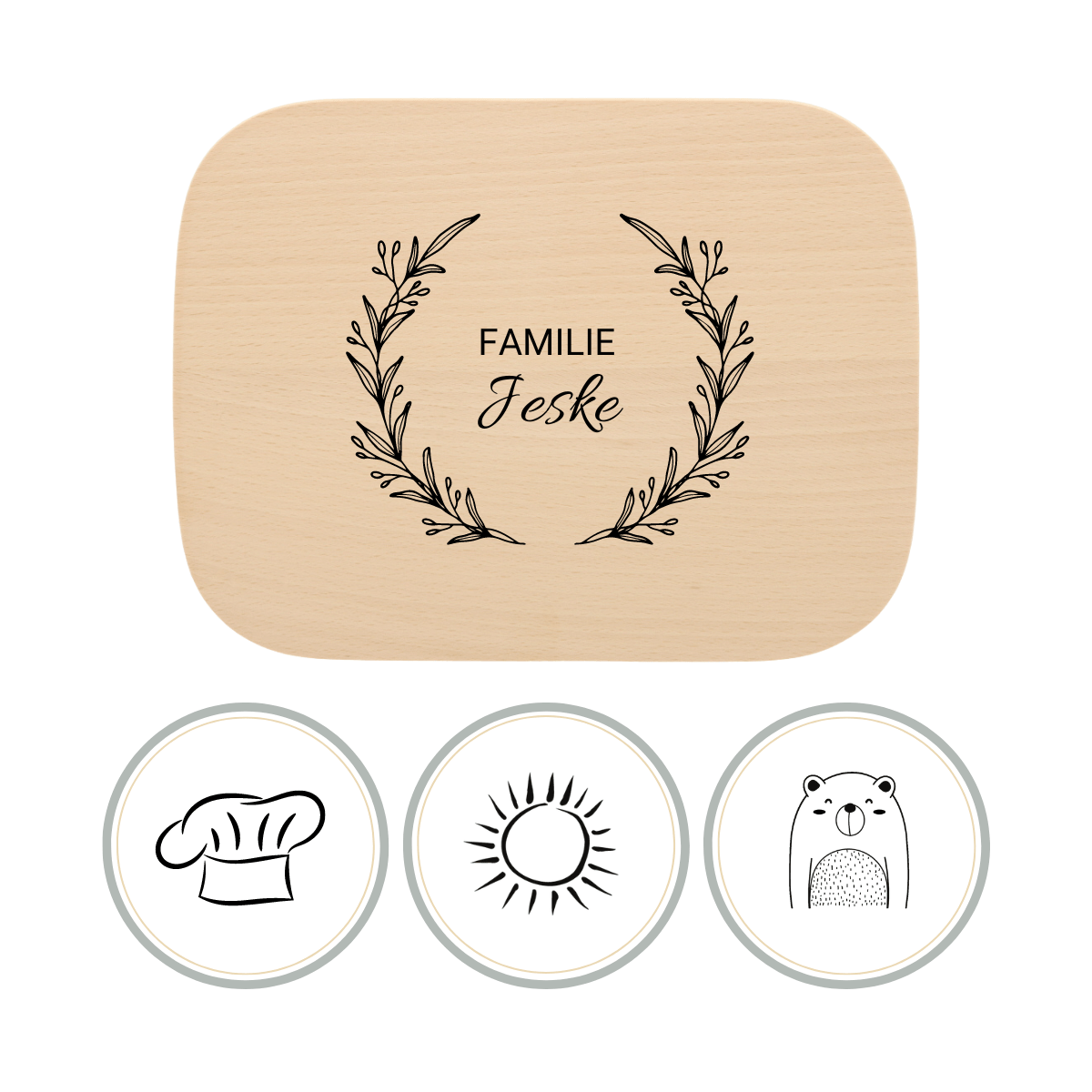 Frühstücksbrett aus robustem Buchenholz Mit personalisierbarem Wunschtext- und Motiv Das rechteckige Frühstücksbrett aus hochwertigem Buchenholz lässt sich mit einem individuellem Wunschtext, sowie Wunschmotiv gravieren und wird so zum absoluten Hingucker auf jedem Frühstückstisch! ✔ PERSÖNLICHES GESCHENK: Verschenke ganz individuelle Frühstücksbrettchen – ob zum Geburtstag, Jubiläum oder Weihnachten. ✔ VIELSEITIG VERWENDBAR: Die Holzbrettchen sind dekorative und vielseitige Alltagshelfer in jeder Küche. Die Frühstücksbretter eignen sich ideal zum Frühstücken, Schneiden, Servieren, oder als Bastelobjekt. ✔ HITZEBESTÄNDIGER UNTERSETZER: Das Brettchen ist extrem hitzefest und kann somit auch als Untersetzer für heiße Töpfe und Pfannen verwendet werden. Anders als bei Frühstücksbretter aus Plastik, macht den Holzbrettchen ein heißer Topf nichts aus. ✔ ANTIBAKTERIELL: Die antiseptischen Eigenschaften des Holzbretts verhindern eine unkontrollierte Bakterienbildung. Somit bleibt dein Frühstück auf dem Brotzeitbrett aus Holz frei von Bakterien. ✔ EINFACH REINIGEN: Das natürliche Brotzeitbrett ist nicht für die Spülmaschine geeignet. Nach Gebrauch das Holz mit warmem Wasser reinigen und mit Pflanzenöl pflegen.