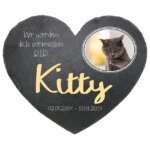 Gedenktafel Schieferherz mit Foto und Namen – 24 cm Motiv Katze