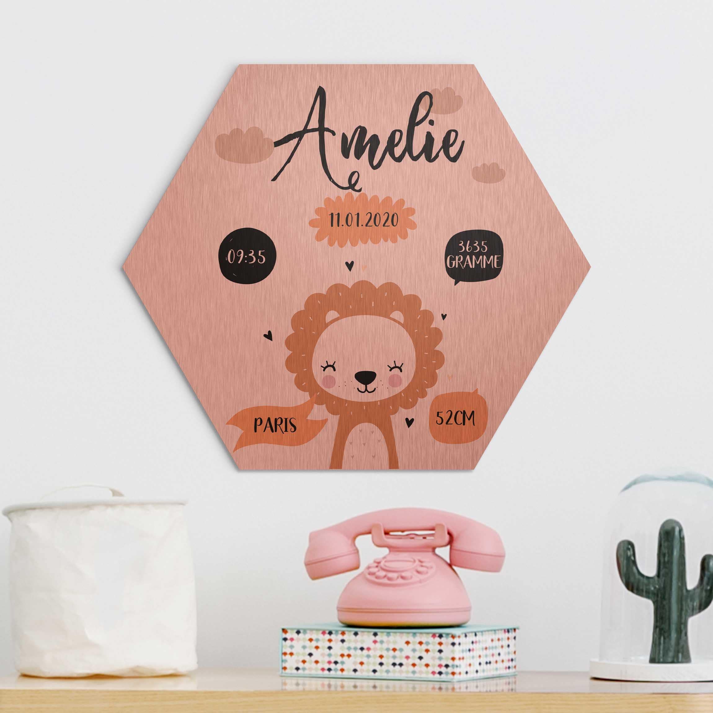 Hexagon-Alu-Dibond Bild Der liebe Löwe Wunschtext