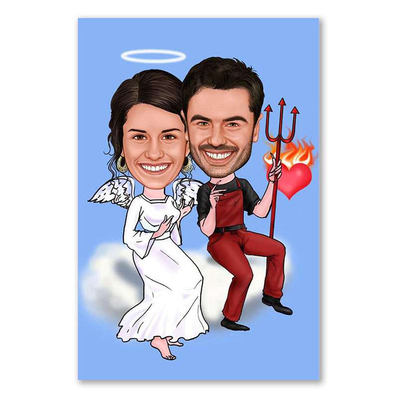 Karikatur vom Foto – Engel und Teufel auf Wolke (ca230)