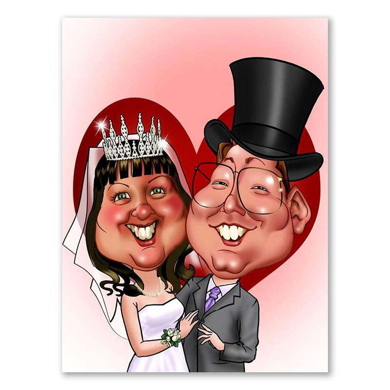 Karikatur vom Foto – Hochzeit mit Herz (ca274)