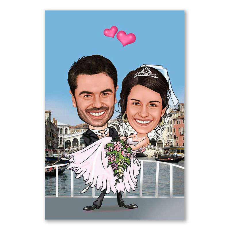 Karikatur vom Foto – Hochzeitspaar in Venedig (ca542)