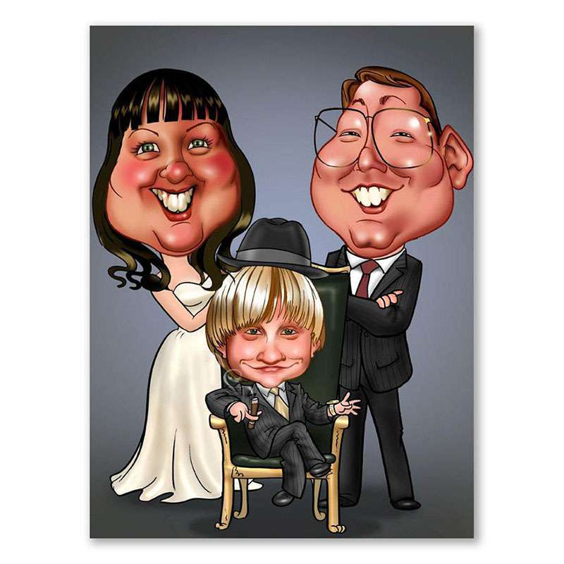 Karikatur vom Foto – Kleiner capone mit Eltern (ca293)