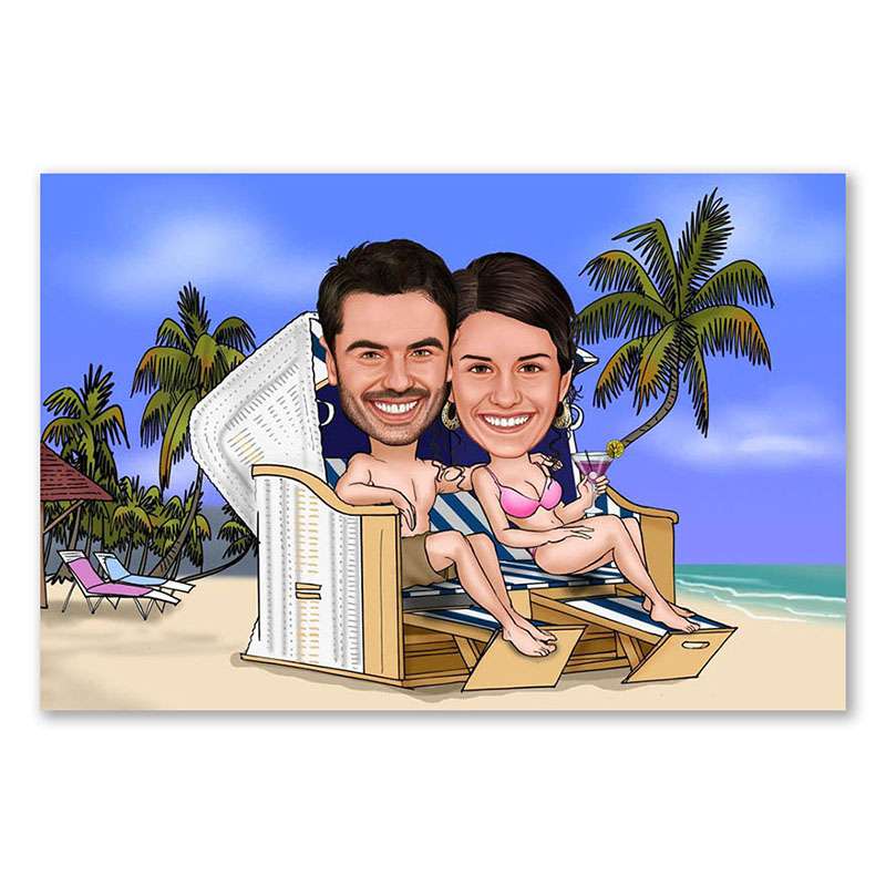 Karikatur vom Foto – Paar im Strandkorb (ca287)