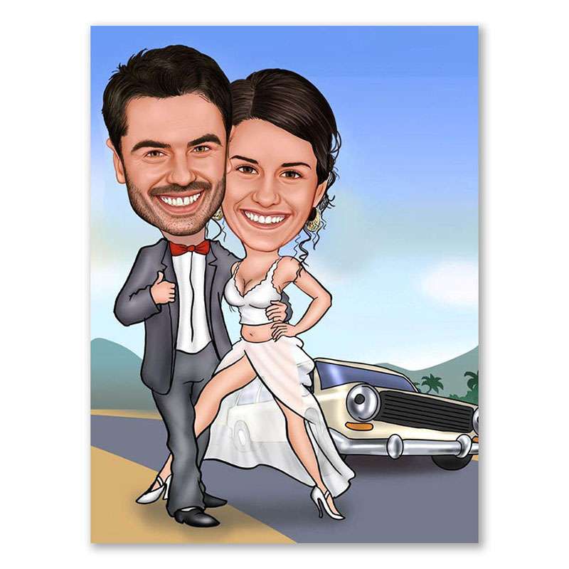 Karikatur vom Foto – Hochzeit mit Herz (ca274)
