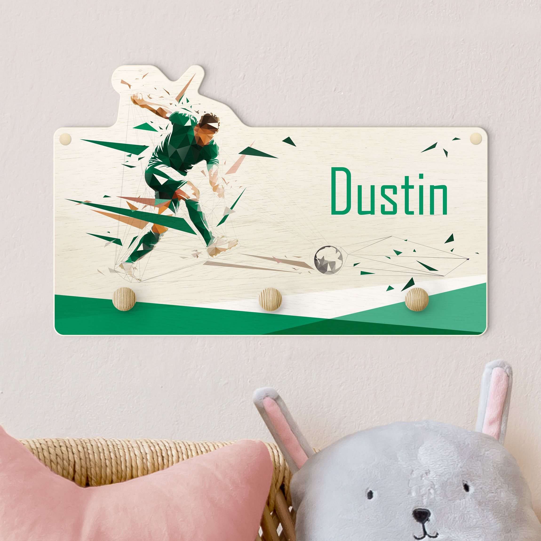 Kindergarderobe Holz mit Namen Lieblingsverein Rasengrün mit Wunschname