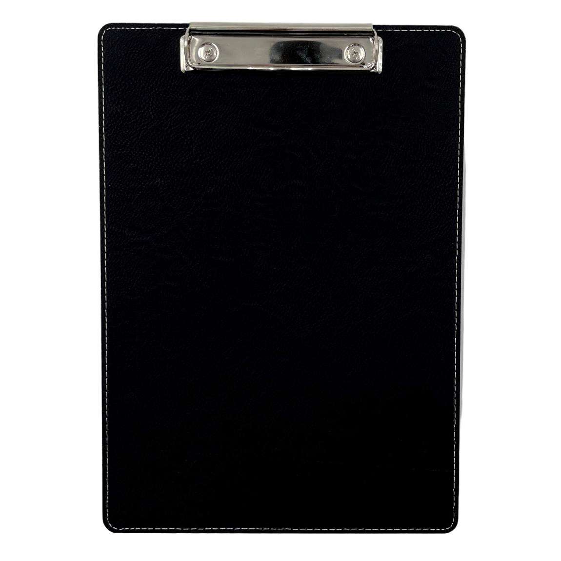 Klemmbrett mit hochwertigem Kunstleder DIN A4 schwarz personalisierbar in silber