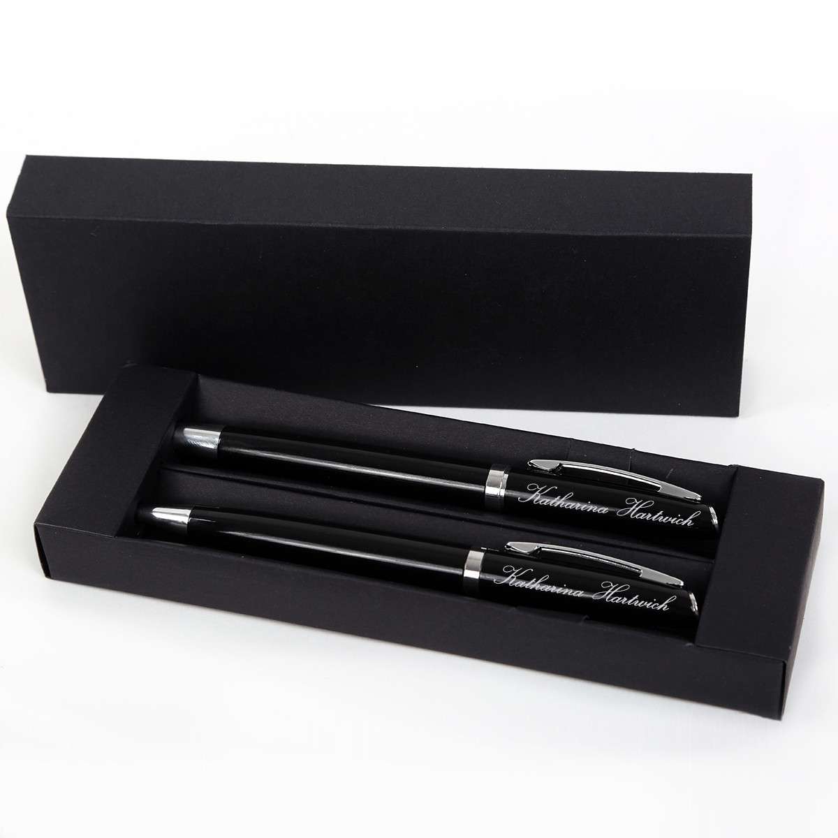 Das dreiteilige Schreibset „Alphabet“ bestehend aus einem Drehkugelschreiber (schwarz schreibend),einem Rollerball (schwarz schreibend) und einem stabilen Kartonagen-Etui . Der Schriftzug auf den Stiften entsteht durch modernste Lasergravur- Technik.Diese Gravurart ist im Vergleich zu anderen Veredelungsarten besonders dauerhaft und zeitlos. Die Farbe der Gravur ist nicht w?hlbar.Da der Wunschtext oder Name auf dem Kugelschreiber eingebrannt wird,ist die Farbe immer wei?/silber. Der Kugelschr…