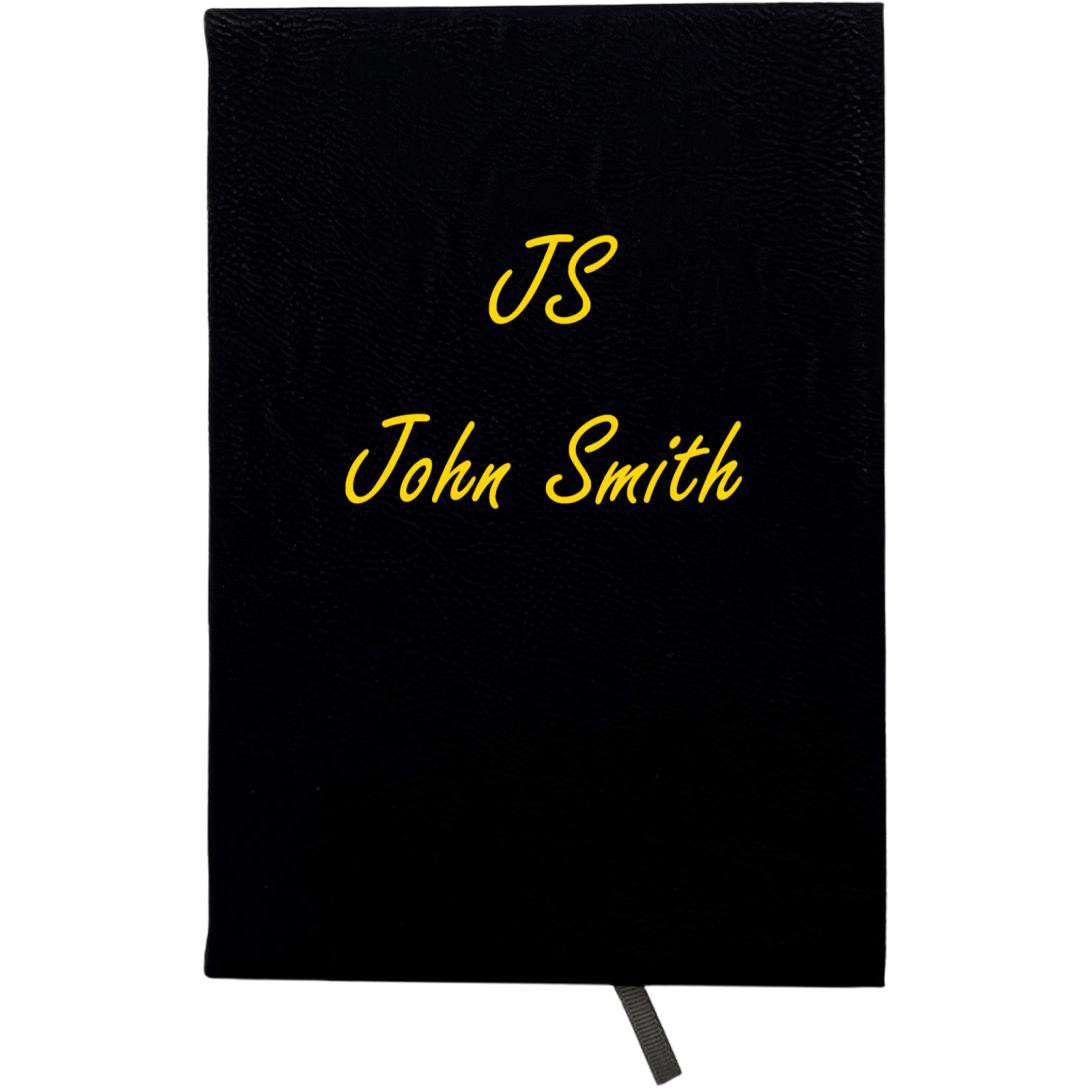 Notizbuch mit hochwertigem Kunstleder 14×20,5 cm schwarz personalisierbar in golden