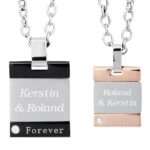 Partner-AnhÀnger mit Gravur DogTag Zirkonia rosegold schwarz