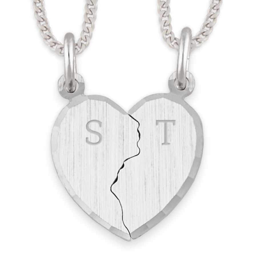 Eine besondere Bindung zu deiner Freundin, Liebe oder Mutter? Teile einen herzförmigen AnhĂ€nger mit deinen Liebsten. Ihr tragt beide je eine HĂ€lfte des silbernen AnhĂ€ngers. Wir gravieren beide Teile nach deinen WĂŒnschen mit einem Buchstaben. Auf diese Weise seid ihr nie wirklich weit voneinander entfernt. Die AnhĂ€nger sind auch ein tolles Geschenk zum Valentinstag, zum Geburtstag oder um jemandem zu sagen, wie wichtig er oder sie fĂŒr dich ist.