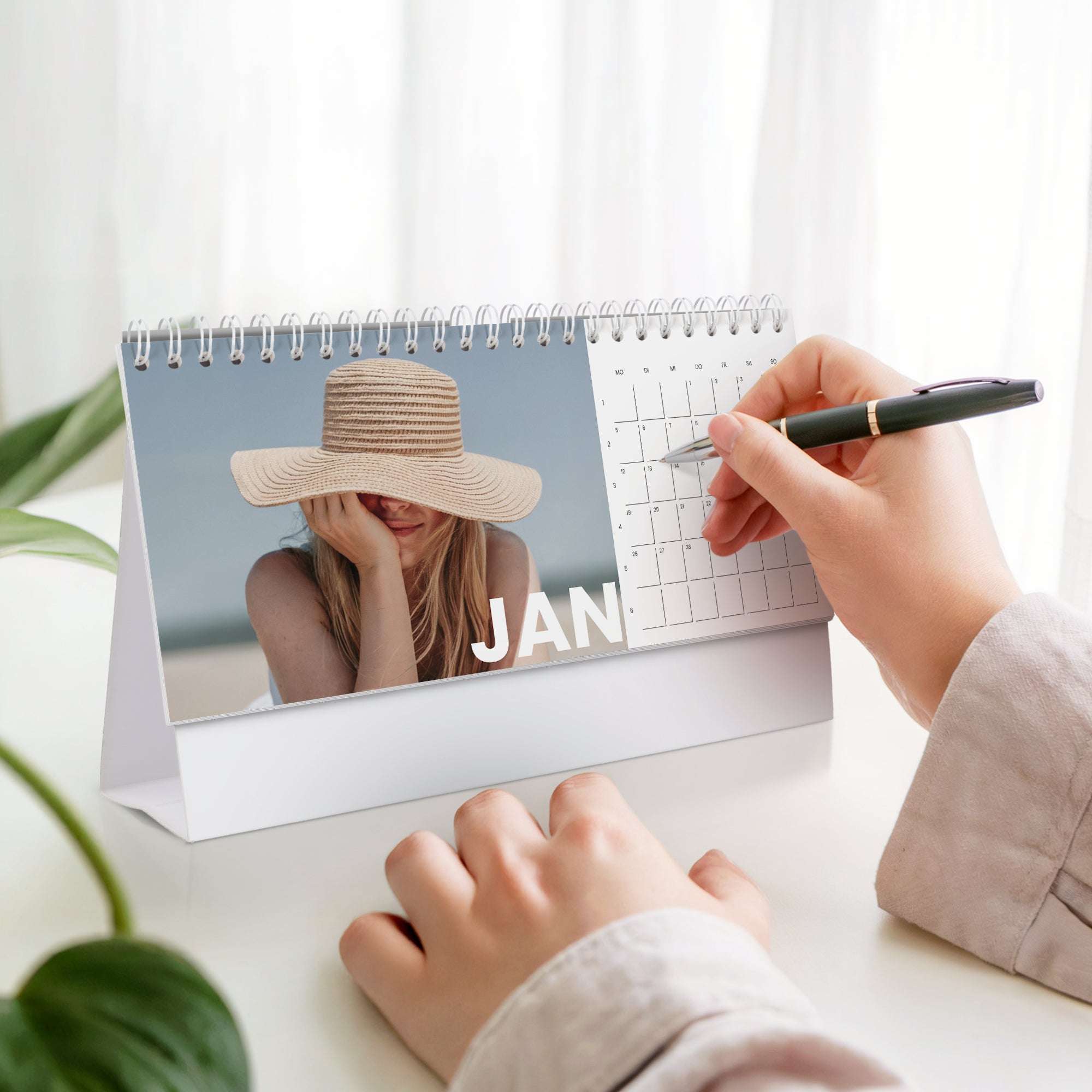 Verwandeln Sie Ihren Schreibtisch mit einem personalisierten TischkalenderWerten Sie Ihren Arbeitsplatz auf und bleiben Sie mit unserem vollständig anpassbaren Desktop-Kalender stilvoll organisiert. Dieser Kalender ist perfekt für Heimbüros, Klassenzimmer oder Unternehmensumgebungen geeignet und kombiniert Funktionalität mit einer persönlichen Note, um Ihren Tag jeden Tag aufzuhellen. Anpassungsoptionen- Fügen Sie Ihre Lieblingsfotos hinzu- Fügen Sie inspirierende Zitate oder persönliche Erinnerungen hinzu- Doppelseitige Personalisierung für maximale WirkungUnser Tischkalender wird in atemberaubenden Vollfarben gedruckt und sorgt dafür, dass Ihre wertvollen Erinnerungen oder Markenbilder in kristallklarer Qualität dargestellt werden. Durch die Personalisierung auf beiden Seiten genießen Sie das ganze Jahr über doppelte Inspiration.Umweltfreundliche WahlUnser Tischkalender aus hochwertigem Papier ist eine umweltbewusste Wahl. Er ist recycelbar und aus nachhaltigen Materialien hergestellt, sodass Sie organisiert bleiben und gleichzeitig Ihren CO2-Fußabdruck reduzieren können.Vielseitige EinsatzmöglichkeitenUnser Tischkalender eignet sich optimal für verschiedene Einsatzbereiche:- Homeoffice: Termine und Familientermine im Blick behalten- Firmengeschenk: Beeindrucken Sie Ihre Kunden mit einem gebrandeten, personalisierten Kalender- Lehrerpulte: Stundenpläne und wichtige Termine verwalten- Studentenwohnheime: Verpassen Sie nie wieder eine AbgabefristEgal, ob Sie Projektfristen im Auge behalten, besondere Anlässe markieren oder einfach Ihren Arbeitsplatz verschönern möchten, dieser personalisierte Tischkalender ist der perfekte Begleiter für das kommende Jahr. Gestalten Sie noch heute Ihren individuellen Tischkalender und machen Sie jeden Tag zu einem Spiegelbild Ihrer Persönlichkeit!