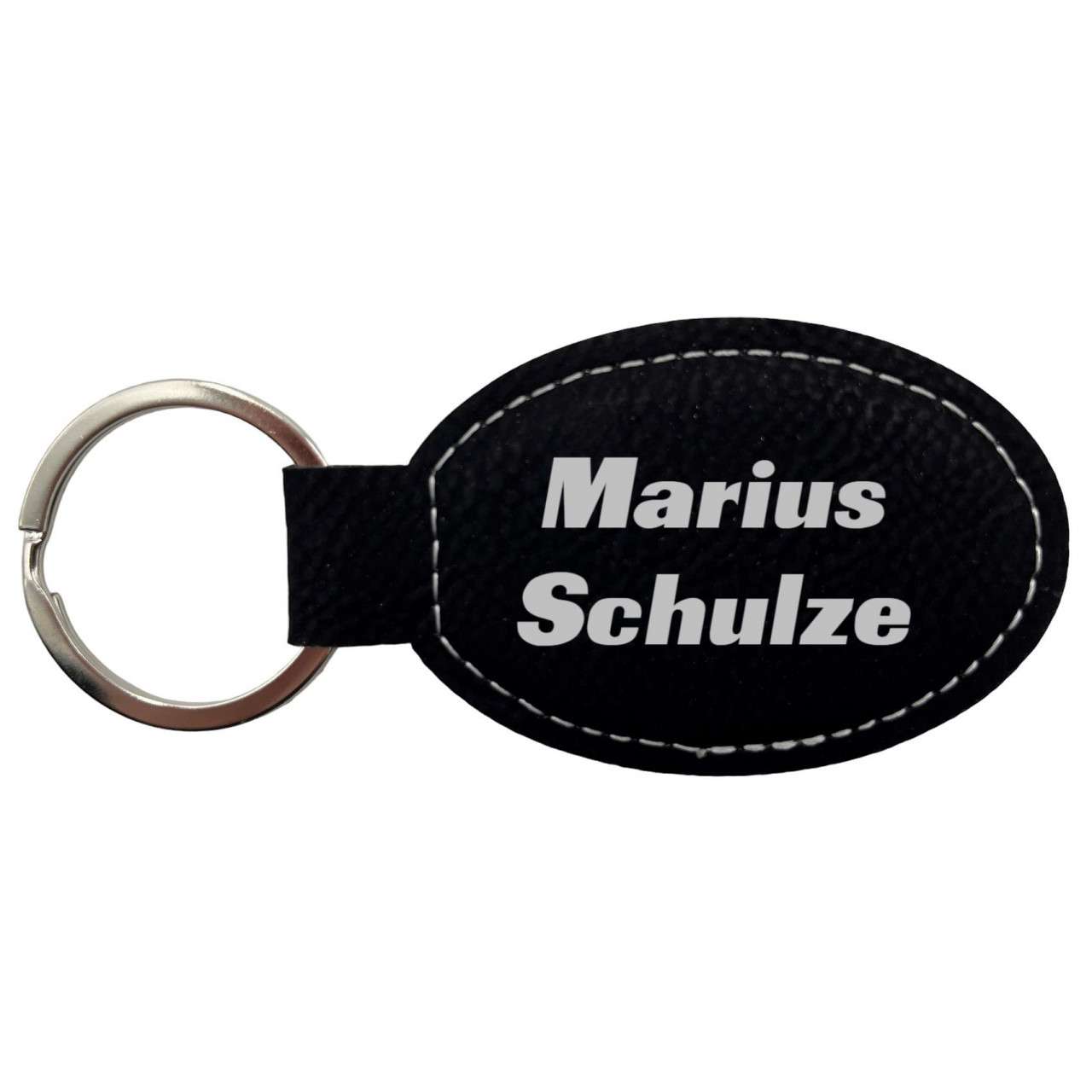 Schlüsselanhänger Kunstleder oval schwarz personalisierbar in silber