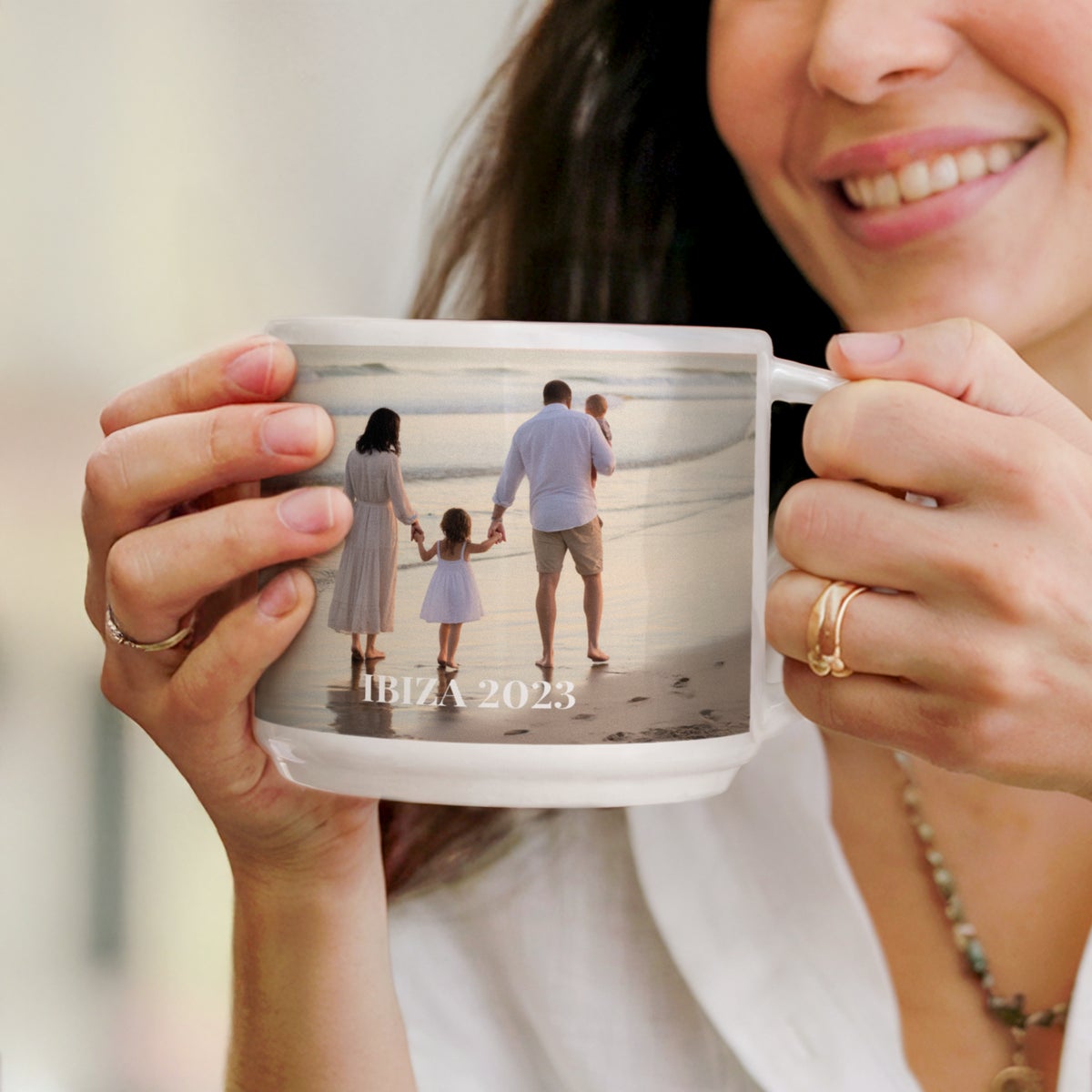Die stapelbare Fototasse, die du mit deinem Foto, einer Collage oder deinem Firmenlogo personalisieren kannst, macht jeden Schluck zu einem besonderen Moment und hält deine Erinnerungen lebendig. Diese einzigartige Tasse aus hochwertiger, glänzender Keramik ist nicht nur ein praktischer Begleiter für deinen Kaffee oder Tee, sondern auch eine Leinwand für deine schönsten Momente. Füge ein unvergessenes Foto hinzu, gestalte eine beeindruckende Collage oder präsentiere dein Firmenlogo. Deine Designs werden dann bildgenau und in Vollfarbe auf die Tasse bedruckt, sodass sie lebendig und farbecht zur Geltung kommen.Mit einem großzügigen Fassungsvermögen von 445 ml bietet diese Tasse viel Platz für dein Lieblingsgetränk, sei es der morgendliche Kaffee oder die heiße Schokolade am Abend. Trotz ihrer Größe ist sie clever stapelbar und spart so wertvollen Platz in deinem Schrank. Mit Maßen von 8,8 cm Höhe und 9,8 cm Durchmesser passen diese Tassen perfekt zusammen.Suchst du ein ausgefallenes Geschenk zum Geburtstag für deine beste Freundin, ein liebevolles Dankeschön für die Oma, ein besonderes Präsent zum Ruhestand des Kollegen oder ein einzigartiges Firmenjubiläumsgeschenk? Diese personalisierte Tasse ist die ideale Wahl. Überrasche deinen Vater zum Vatertag, deine Mutter zum Muttertag oder deinen Partner zum Valentinstag mit einer Tasse, die eure gemeinsamen Erinnerungen feiert. Sie eignet sich auch hervorragend als Willkommensgeschenk für einen Neuanfang oder als Urlaubssouvenir mit deinen schönsten Reisebildern.Die Gestaltung ist kinderleicht: Lade dein Wunschfoto, deine Collage oder dein Logo hinzu, platziere dein Design und überprüfe die digitale Vorschau, bevor du deinen Kauf abschließt. Obwohl die Tasse spülmaschinen- und mikrowellengeeignet ist, empfehlen wir für eine längere Farbbeständigkeit die Handwäsche. Personalisiere deine stapelbare Tasse noch heute und verwandle gewöhnliche Getränke in außergewöhnliche, bedeutungsvolle Momente!