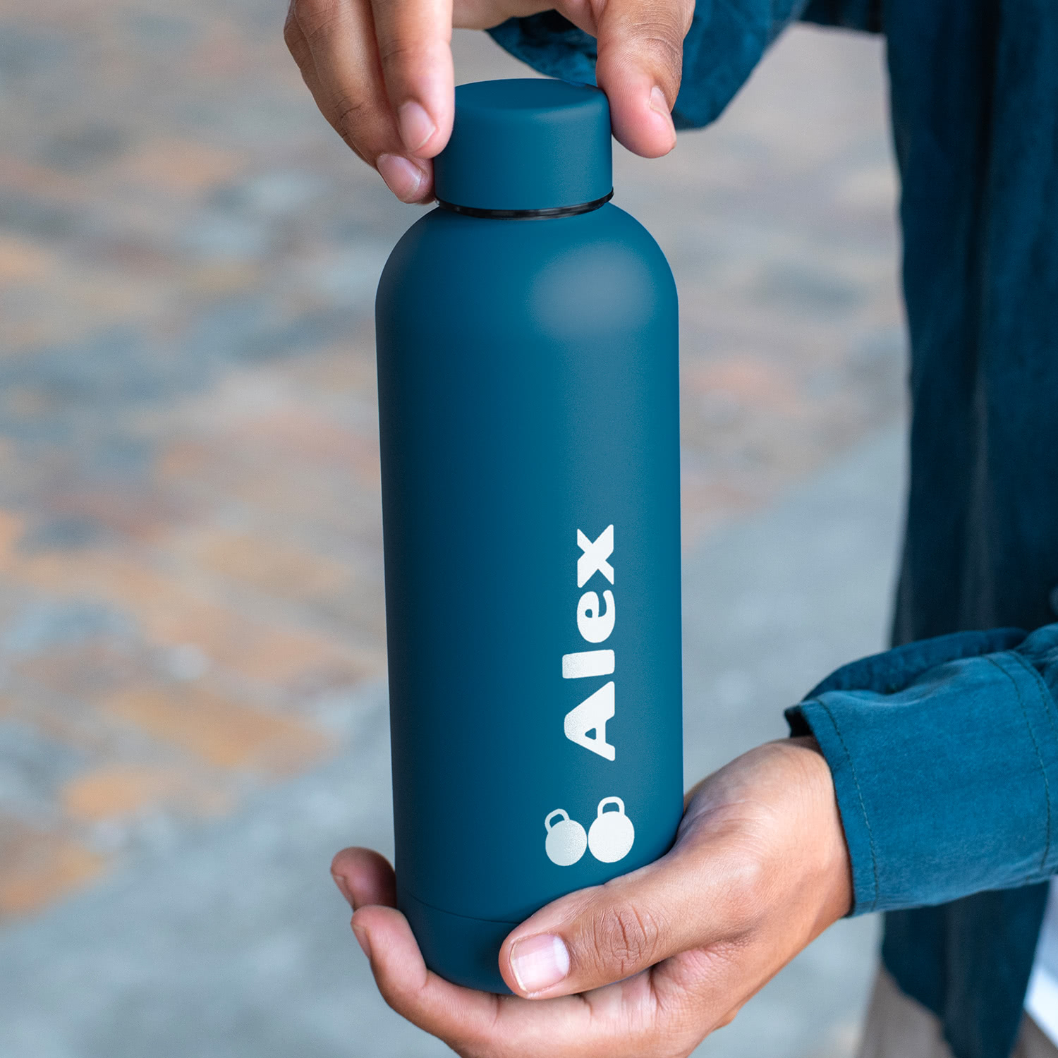 Verwandeln Sie Ihre tägliche Trinkroutine mit unseren Trinkflaschen mit Namen, die durch ein samtiges Satin-Finish glänzen und sich genauso gut anfühlen, wie sie aussehen. Geschmeidig, weich in der Hand und mühelos stilvoll – das ist keine gewöhnliche Flasche. Gefertigt aus doppelwandigem Edelstahl, kommen unsere isolierten Trinkflaschen in drei wunderschönen Farben: klassisches Schwarz, Stahlblau und Waldgrün. Die schlanke, elegante Form liegt perfekt in Ihrer Hand und passt in jeden Becherhalter. Zudem hält die Trinkflasche Ihre Getränke 24 Stunden kalt und 12 Stunden heiss. Ob es Ihr Fitnesspartner, ein unverzichtbares Arbeitsutensil oder ein durchdachtes Geschenk für jemanden Besonderen ist, diese Flasche verleiht jedem Schluck eine persönliche Note. Bleiben Sie stilvoll hydratisiert und schenken Sie den Luxus des Alltags.