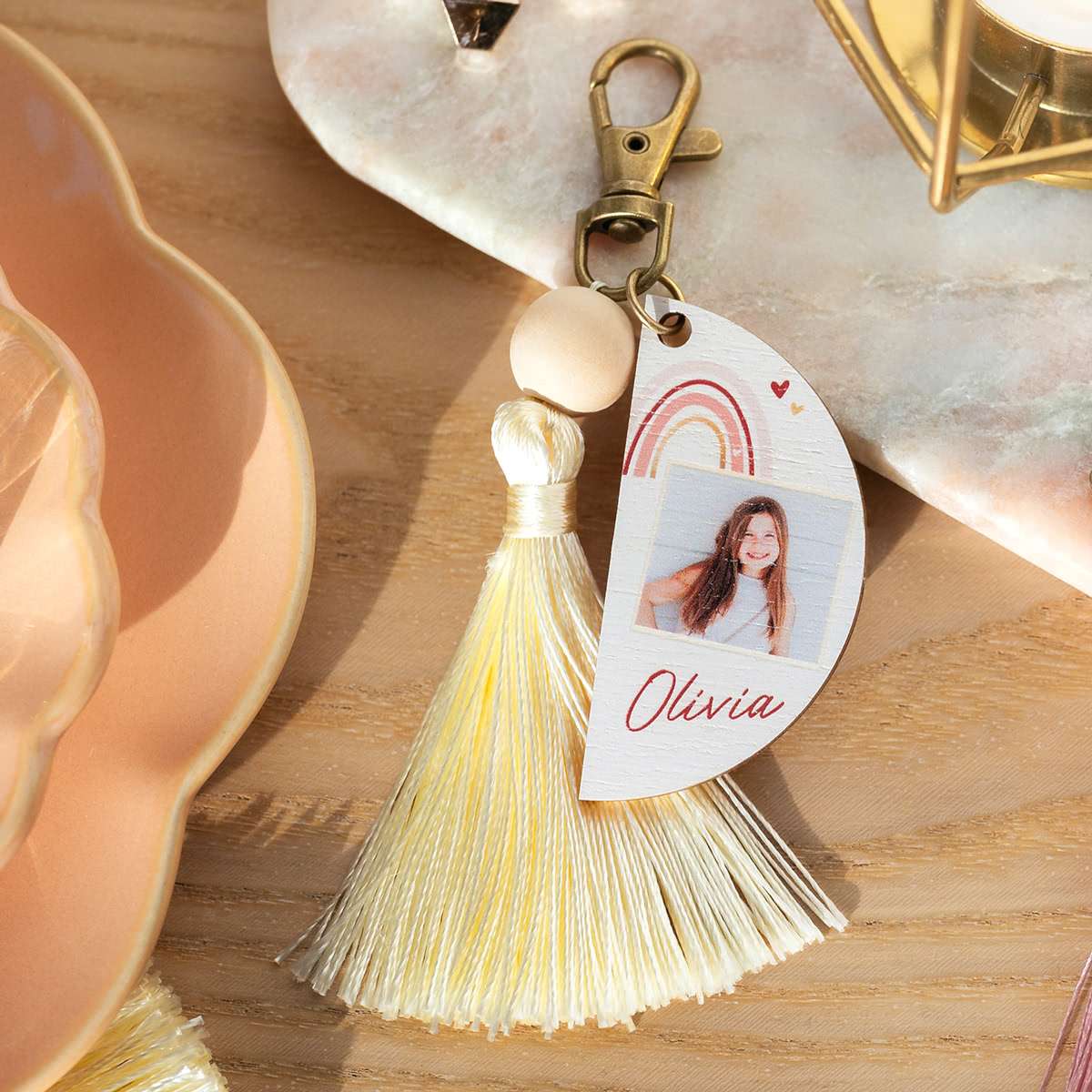 Schaffen Sie das originellste, praktischste und ästhetischste Andenken für Ihr bevorstehendes Ereignis. Dieser schöne Schlüsselanhänger mit Quaste und Holzetikett (6er-Set) ist perfekt, um die Erinnerung an Ihre Zeremonie lebendig zu halten. Personalisieren Sie das Holzetikett mit einem Text Ihrer Wahl und verwenden Sie den Schlüsselanhänger, um eine Botschaft der Freude zu verbreiten. Sie können den Schlüsselanhänger auch mit den Namen und/oder den Daten einer Geburt, Kommunion oder Hochzeit versehen. Mit diesem kreativen Schlüsselanhänger mit bunter Quaste und personalisiertem Etikett können Ihre Gäste ihre Schlüssel leicht identifizieren!