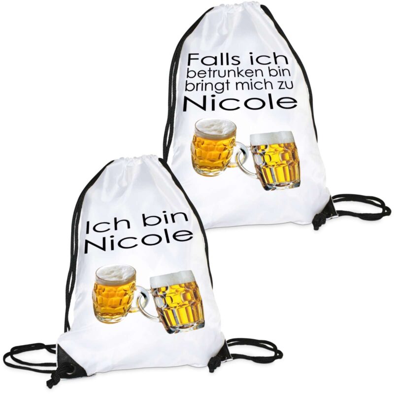 Turnbeutel weiß 2er-Set – Falls ich betrunken bin