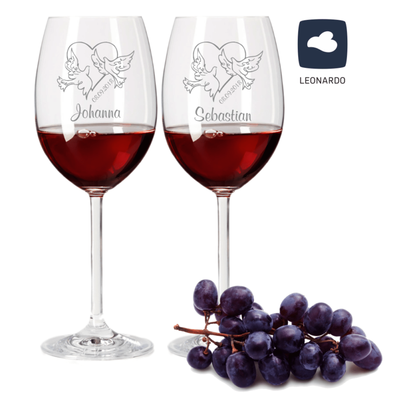 Rotweinglas-Set von Leonardo mit Gravur Tauben